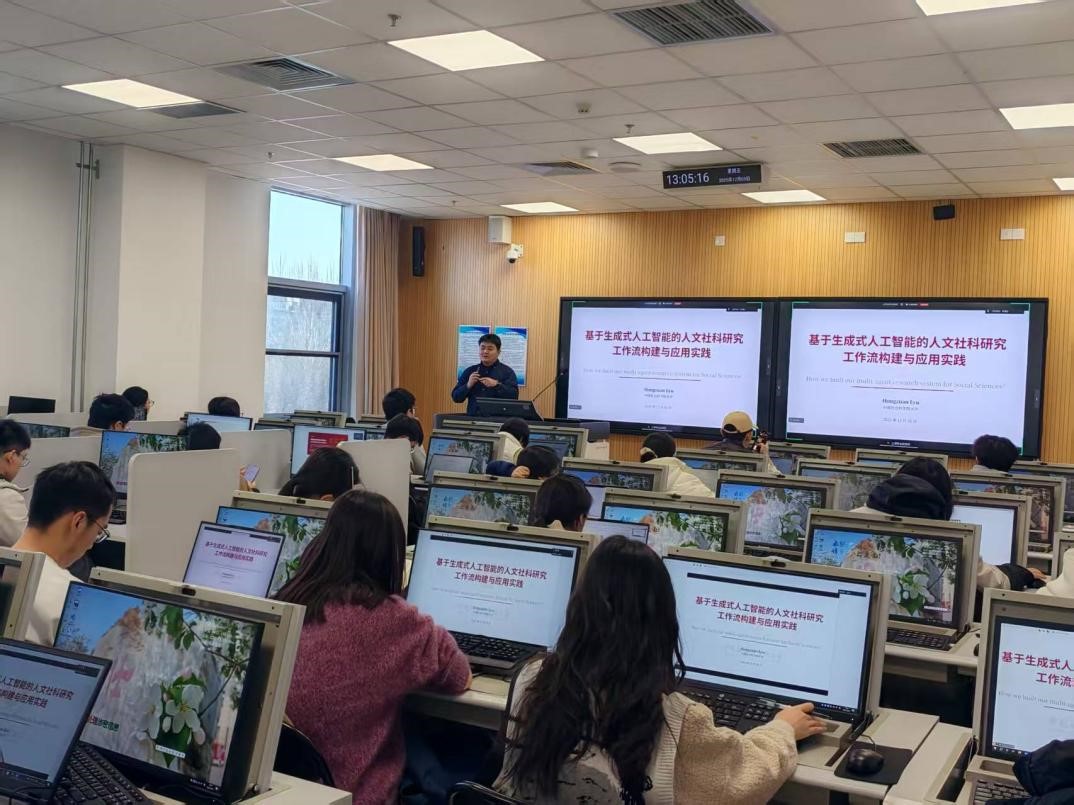 “大模型赋能人文社科工作坊”第三期于2025年12月5日(周五)13:00-14:30在教学综合办公楼313机房成功举办。本次工作坊紧密围绕国家“人工智能+”发展战略,聚焦生成式人工智能技术在哲学社会科学领域的深度融合与创新应用,旨在搭建技术交流与实践应用平台,助力师生掌握前沿 AI 技术在社科研究中的具体工作流构建方法,推动人文社科研究的数字化、智能化发展。